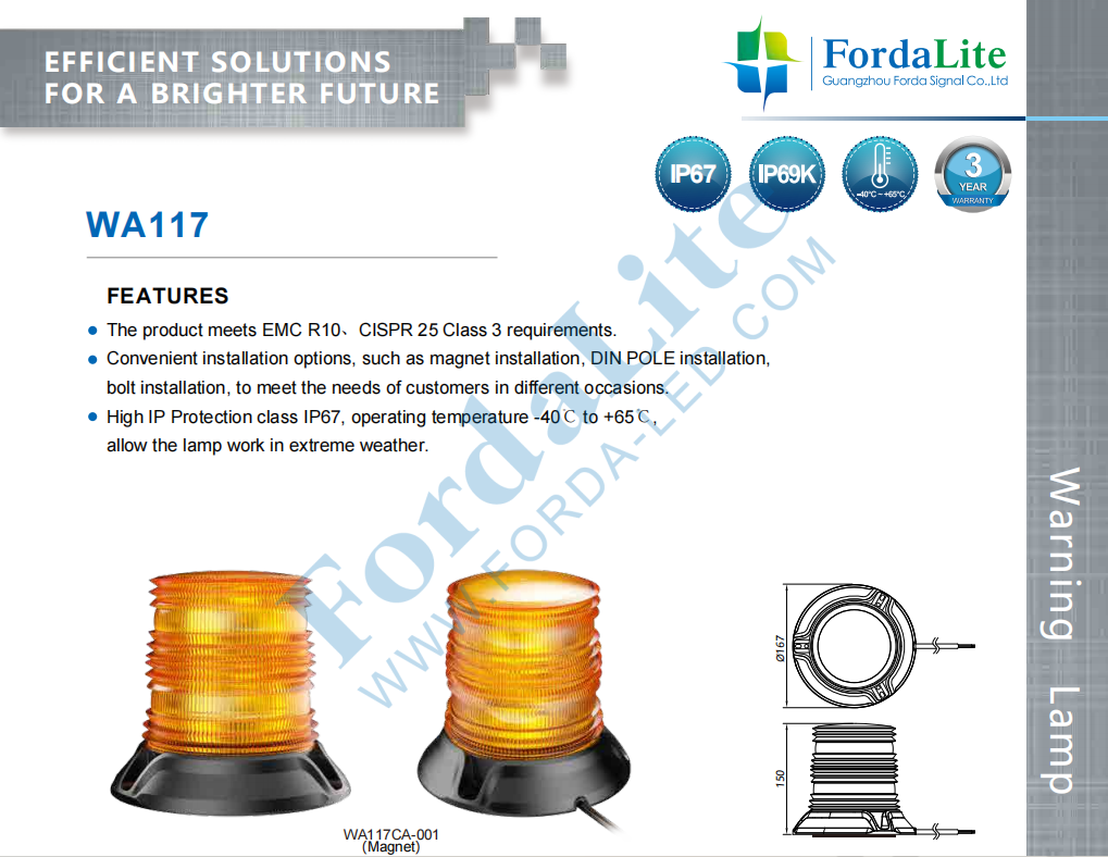 Waterproof rating IP67, working temperature -40 ℃~+65 ℃, the lamp can work in extreme weather conditions.